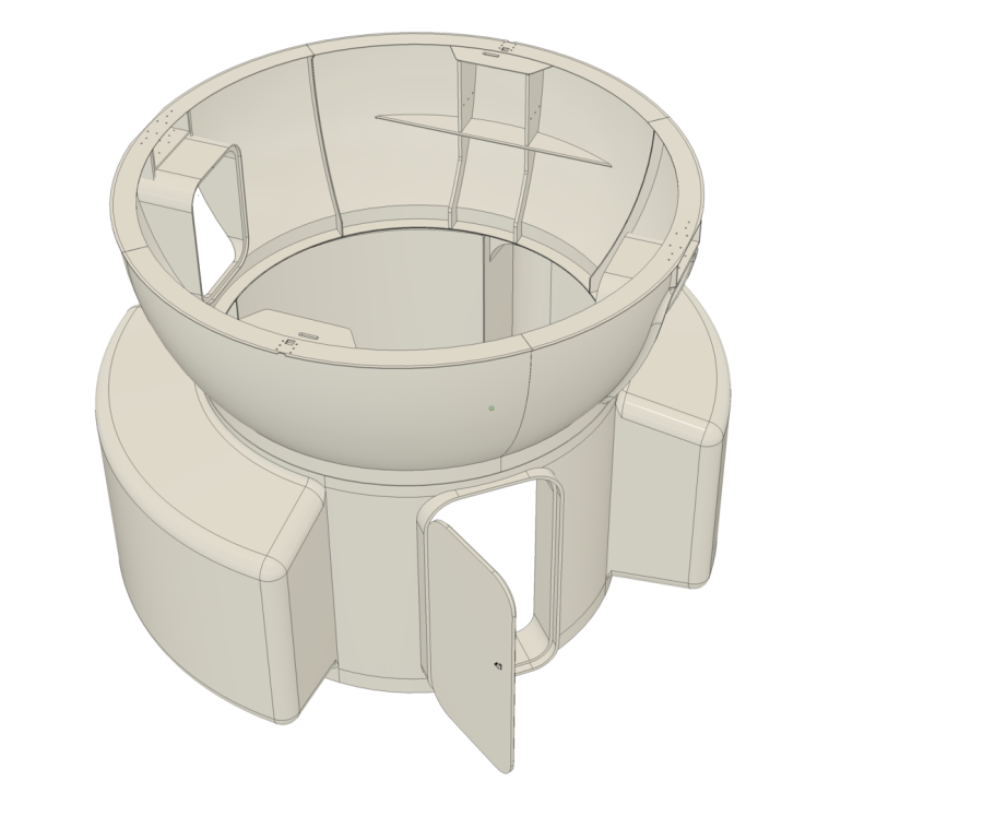 Full-height riser with access door. There is a mid-level floor, with hatch option.